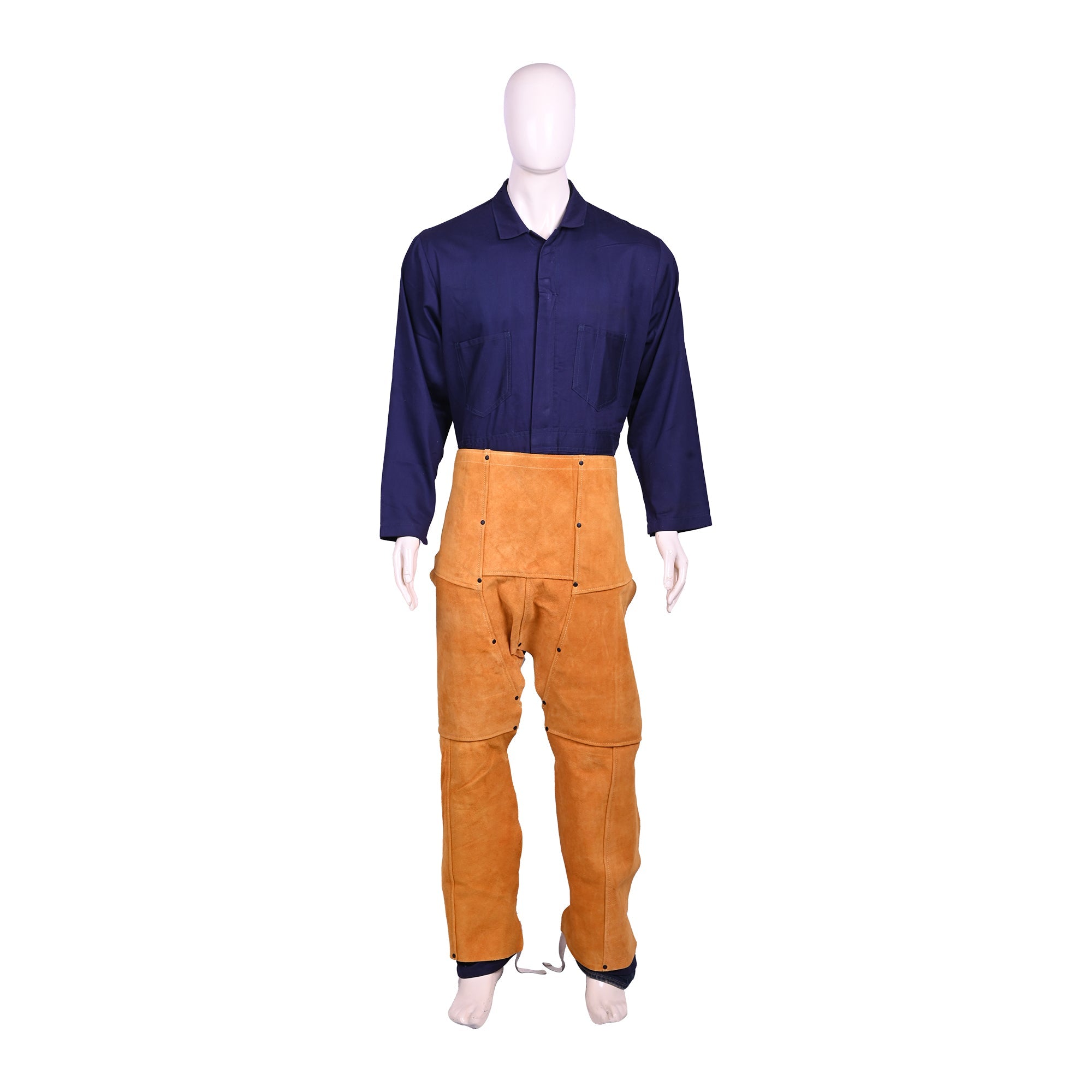 The Cow Split Leather Welding Chaps 40” are crafted to deliver maximum protection, durability, and comfort during welding and high-heat tasks. Made from premium cow split leather and reinforced with Kevlar stitching, these chaps are designed to shield your legs from sparks, heat, and abrasions. With an adjustable strap and buckle mechanism, they ensure a secure and comfortable fit, making them an essential addition to any welder’s safety gear.